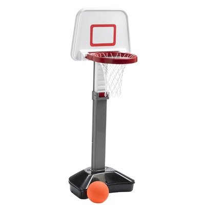 - Sports set includes an inflatable basketball and a 6-position stand